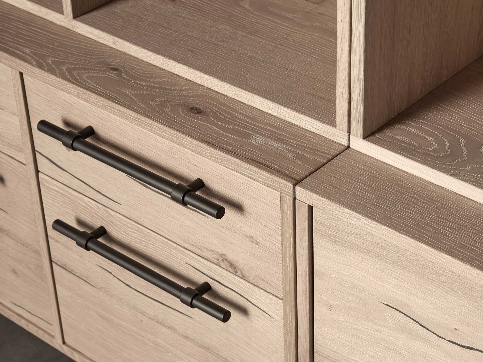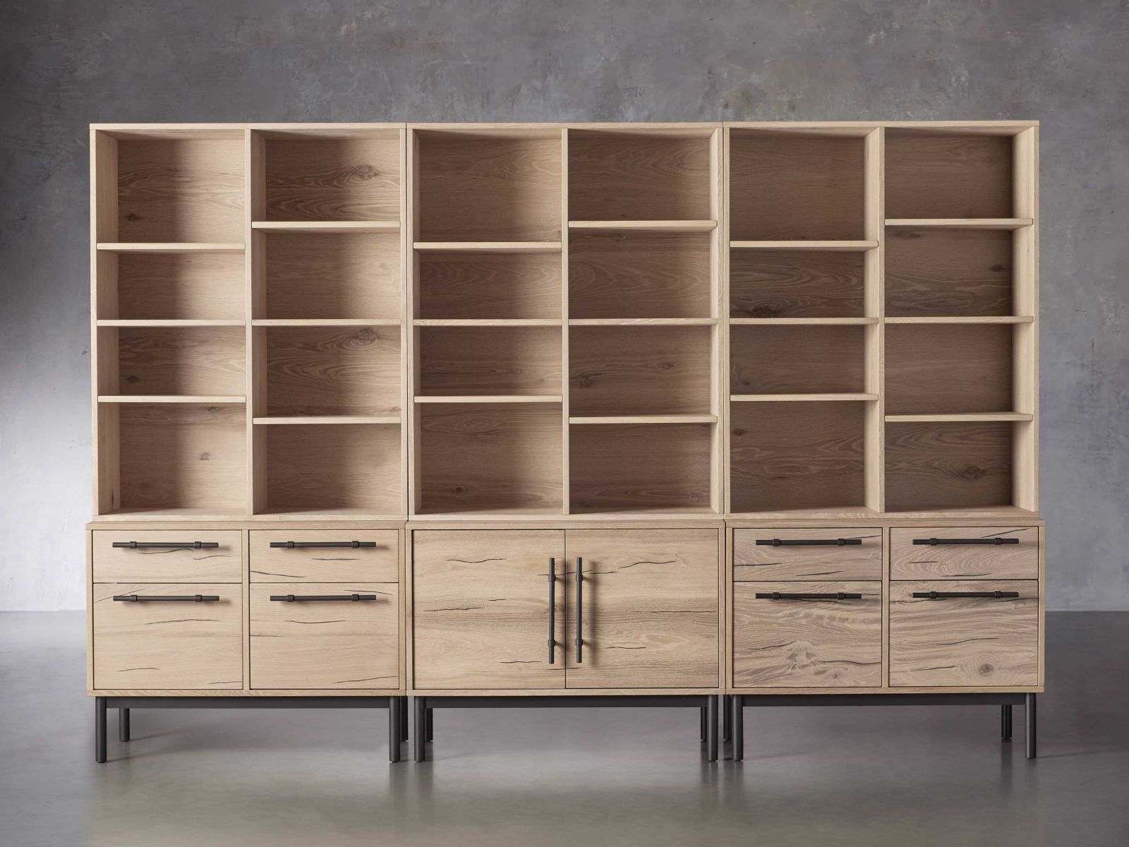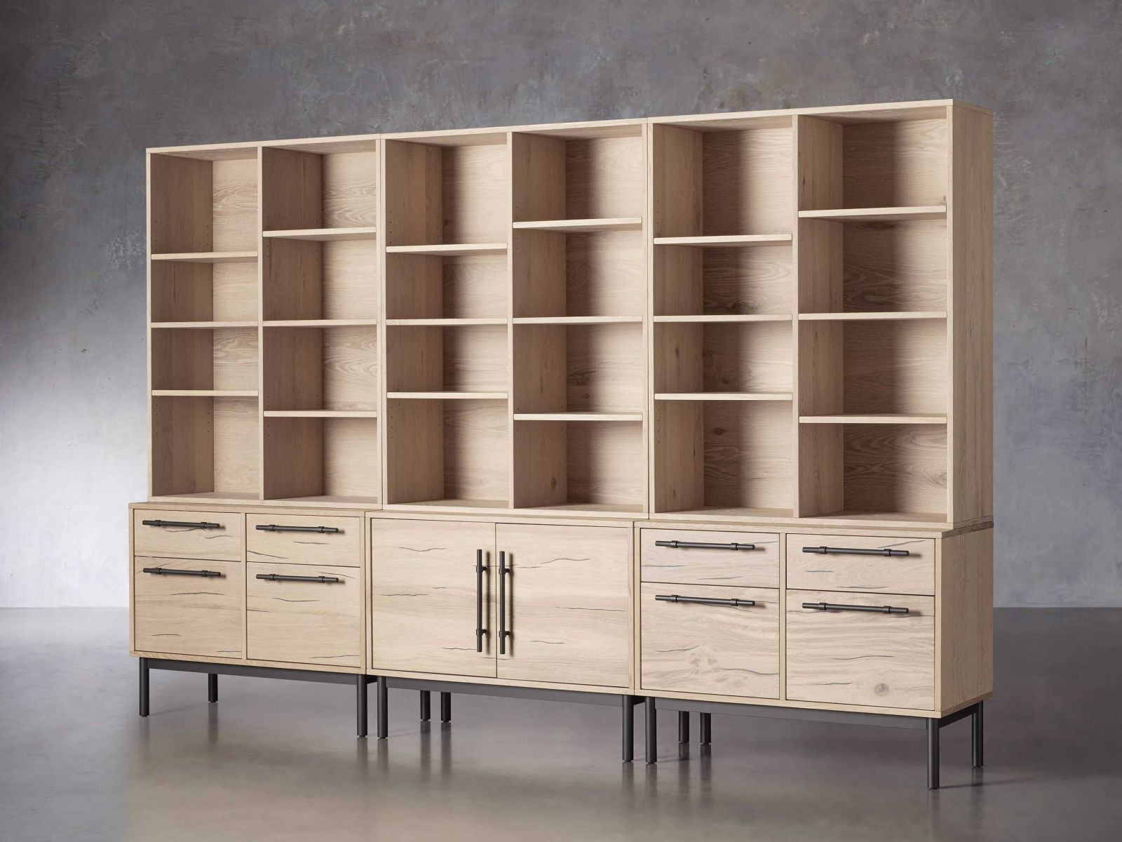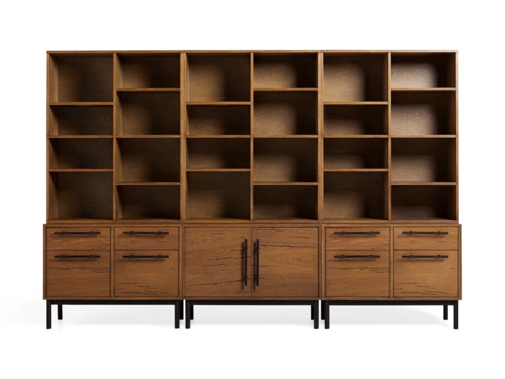 Transform your space with our three piece modular bookcase. Combining contemporary design with rustic charm, this handcrafted piece is the perfect way to store and showcase your favorite books. With its versatile and functional design, this bookcase can be easily arranged to fit your specific needs, making it a valuable addition to your workspace.